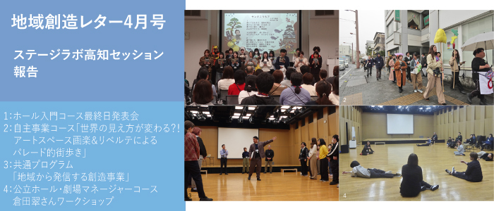 お知らせ 2026年4月1日 地域創造レター4月号を発行しました 2026年3月25日 ステージラボ鶴岡セッション参加者募集 【締切:2026年4月24日(金)必着】 2026年3月10日 「特別寄稿 ビューポイント view point」No.23(櫛野展正)掲載のお知らせ 2026年3月1日 地域創造レター3月号を発行しました 2026年2月3日 「特別寄稿 ビューポイント view point」No.22(鷲田めるろ)掲載のお知らせ もっと見る RSS