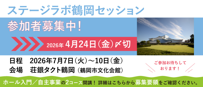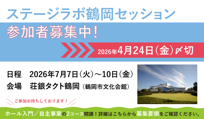 募集中 2025年11月25日 令和8年度公共ホール邦楽活性化事業 サブコーディネーター/アシスタント募集【締切:令和8年1月13日(火)】 2025年11月25日 2026(令和8)年度公共ホール音楽活性化事業 サブコーディネーター/アシスタント/研修スタッフ募集【締切:令和8年1月13日(火)必着】 2025年10月27日 ステージラボ高知セッション参加者募集 【締切:2025年11月25日(火)必着】 2025年9月25日 2026(令和8)年度「地域創造セミナー」実施団体募集【締切:2025年10月31日(金)】 2025年8月28日 【締切延長!】2026(令和8)年度リージョナルシアター事業 実施団体募集【締切:2025年9月12日(金)】 もっと見る RSS