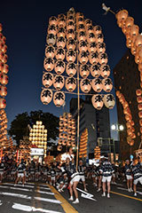 江戸時代中期、お盆を前に邪気や病魔を払い、身を清める「ねぶり流し」と、五穀豊穣の願いを込め、提灯を米俵に竿燈全体を稲穂に見立てて練り歩いたことが由来とされています。現在は、8月3日~6日の4日間、竿燈大通りを会場に開催されています。各町内や、各種団体重さ約50キロの竿燈を手のひら、額、肩、腰などに乗せて、次々に差し手による妙技が披露されます。今日では、各種団体・企業から280本を超える竿燈が出竿されて、その風情はまるで風にそよぐ黄金の稲穂のようです。